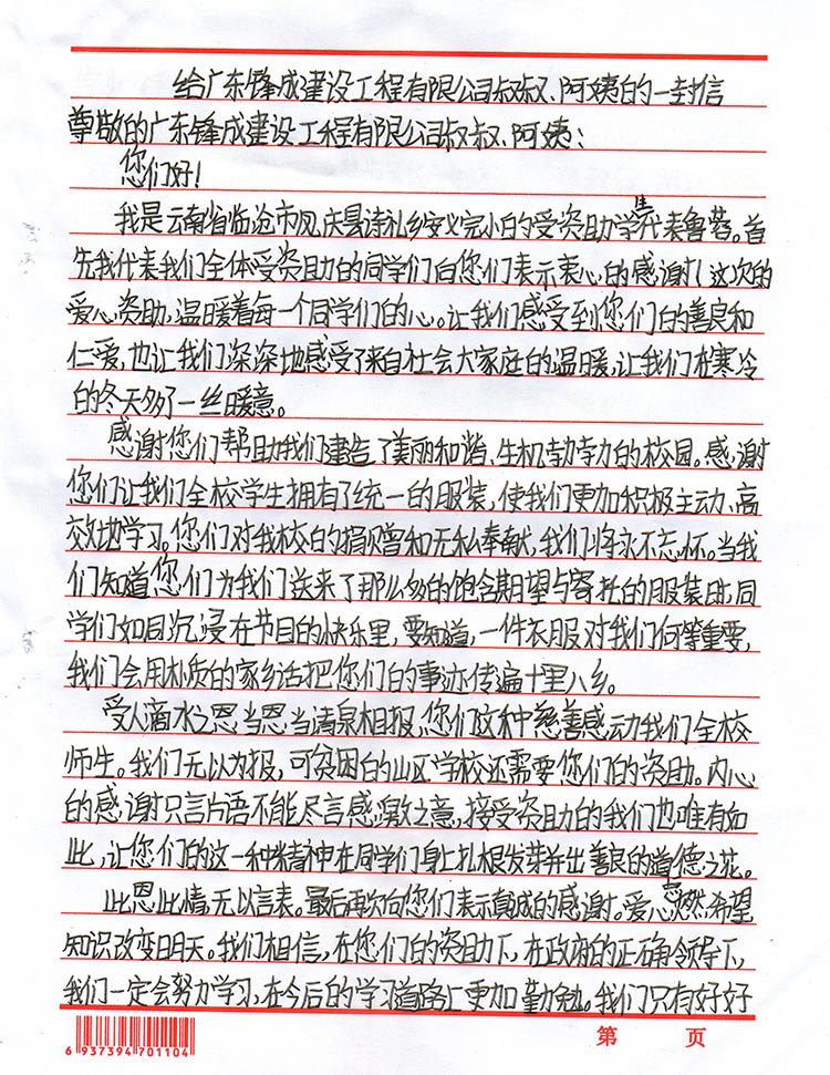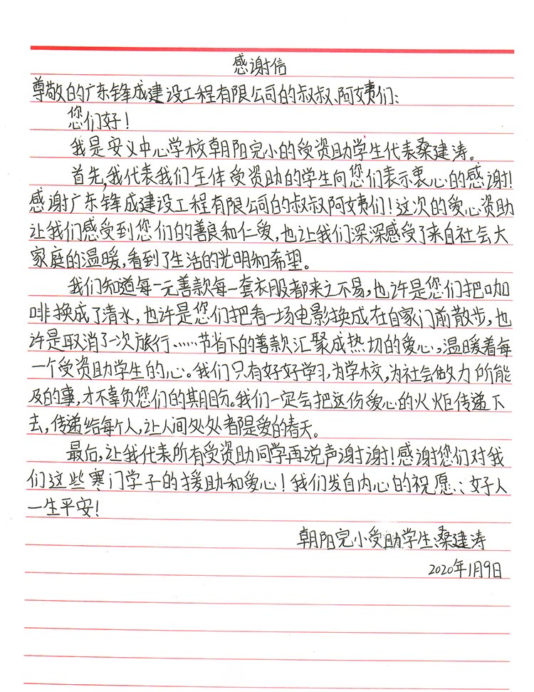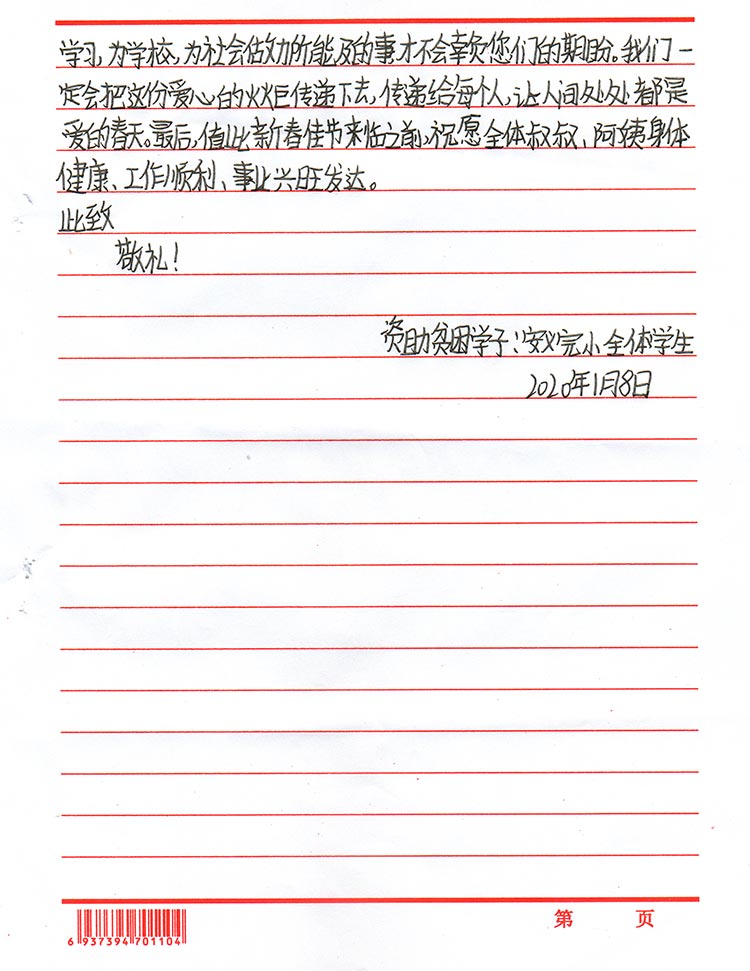 来自孩子们亲手写下的感谢信